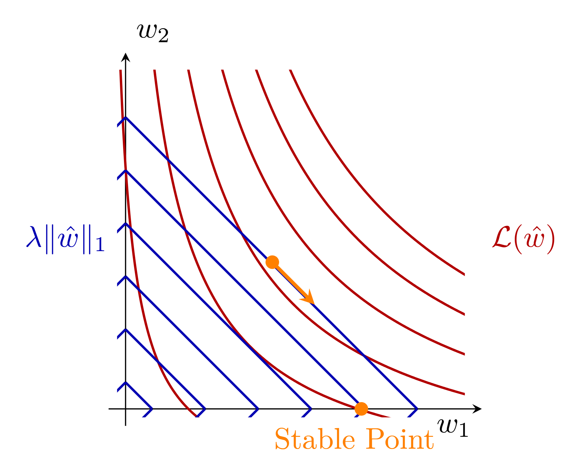 \[\min_{\hat{w}} \; L(\hat{w}) + \lambda \|\hat{w}|_1\]其中 $|\hat{w}|1 = \sum{i=1}^{d+1} \lvert \hat{w}_i \rvert$。 L1正则化的一个重要性质是它倾向于产生稀疏解(sparse solution),即许多权重会被压缩为零。这在特征选择(feature selection)中非常有用,因为它可以帮助我们识别出最重要的特征。