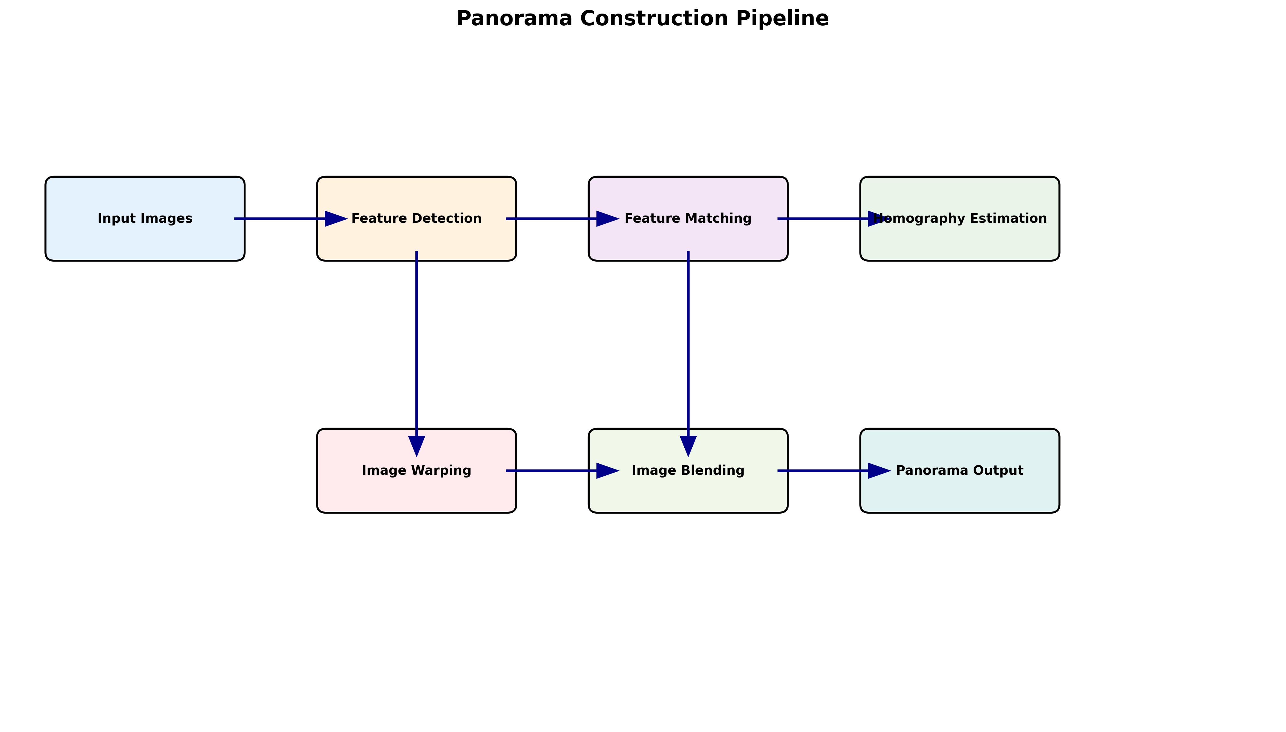 全景图像拼接是计算机视觉中的经典应用,旨在将多张有重叠部分的图像拼接成一张宽视角的全景图像。