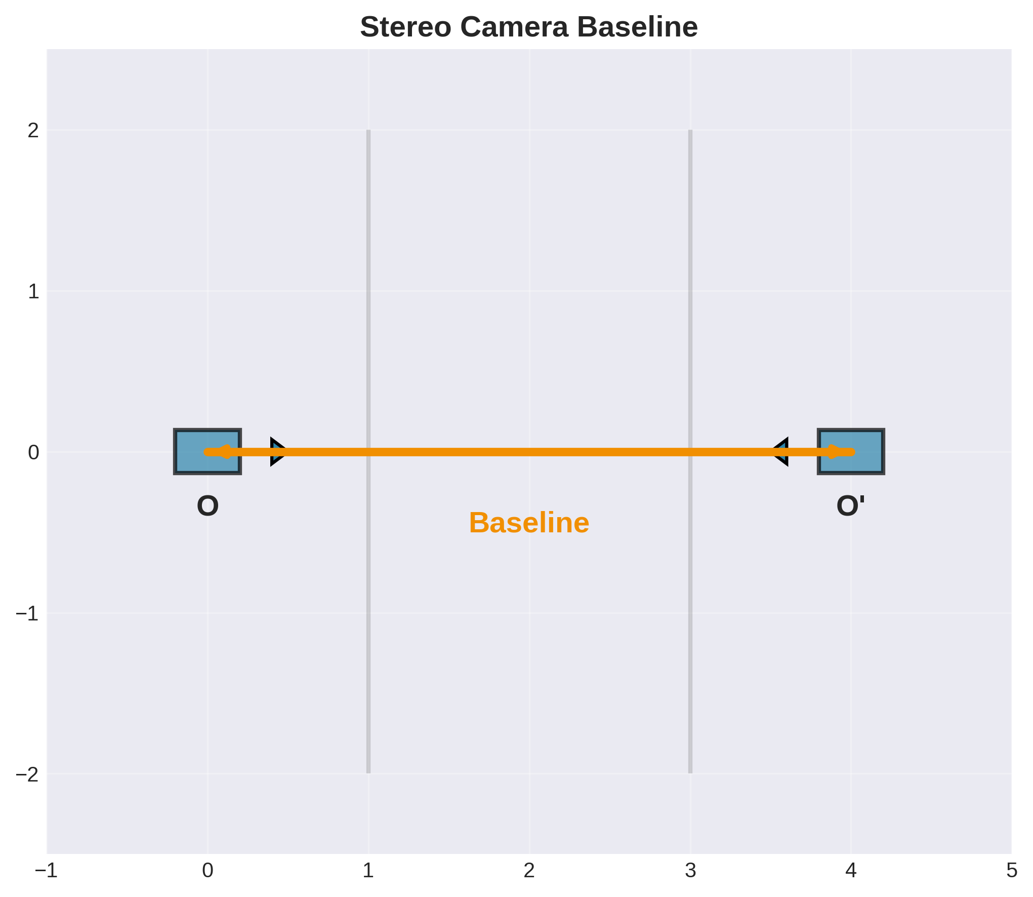 立体视觉(Stereo Vision)通过使用两个标定相机在不同视角下的图像来解决深度模糊性: