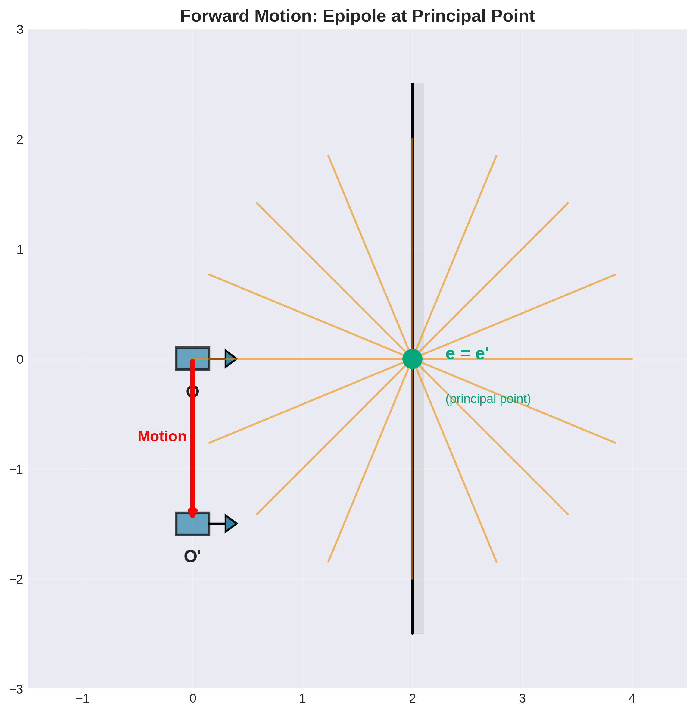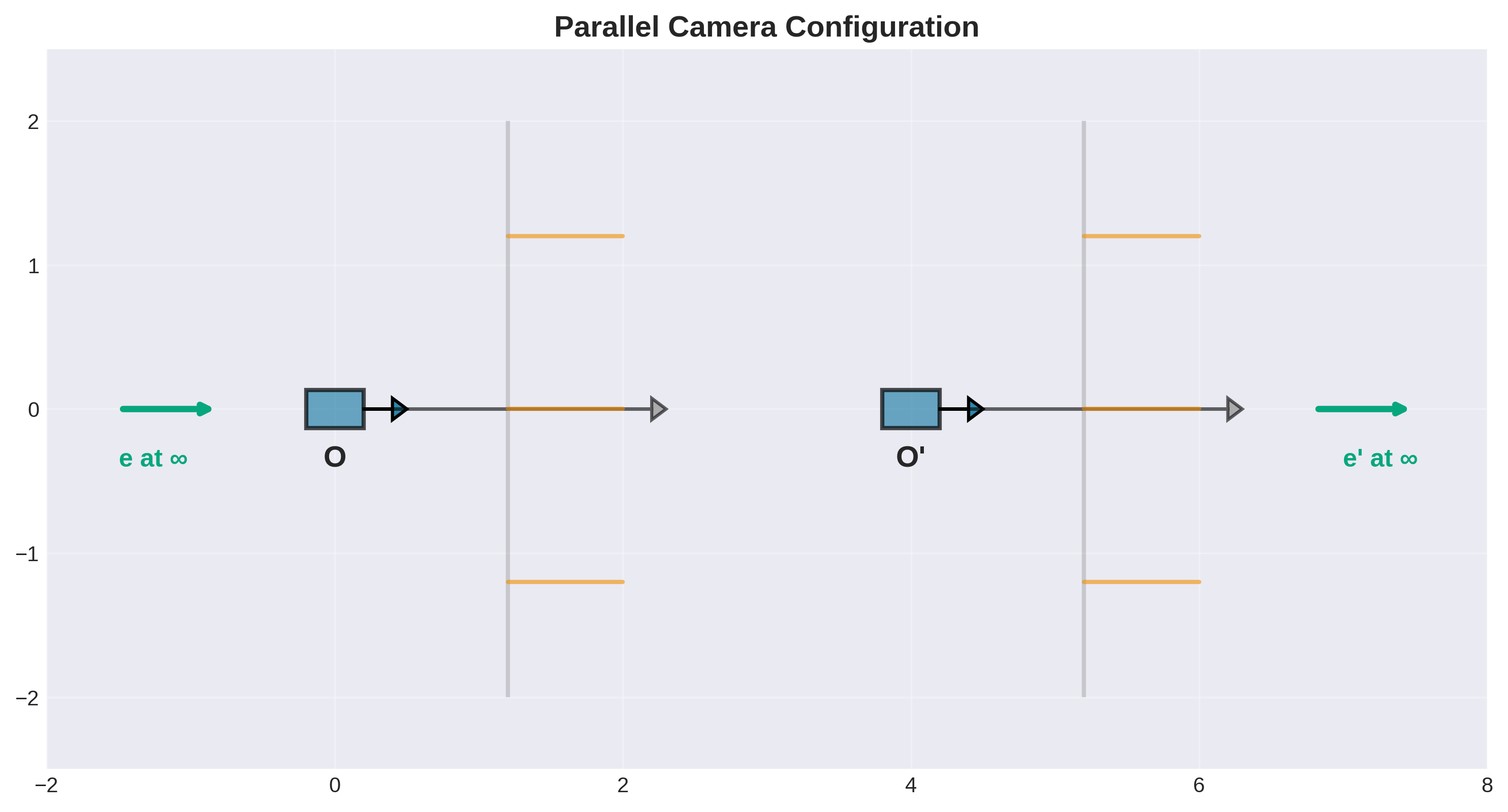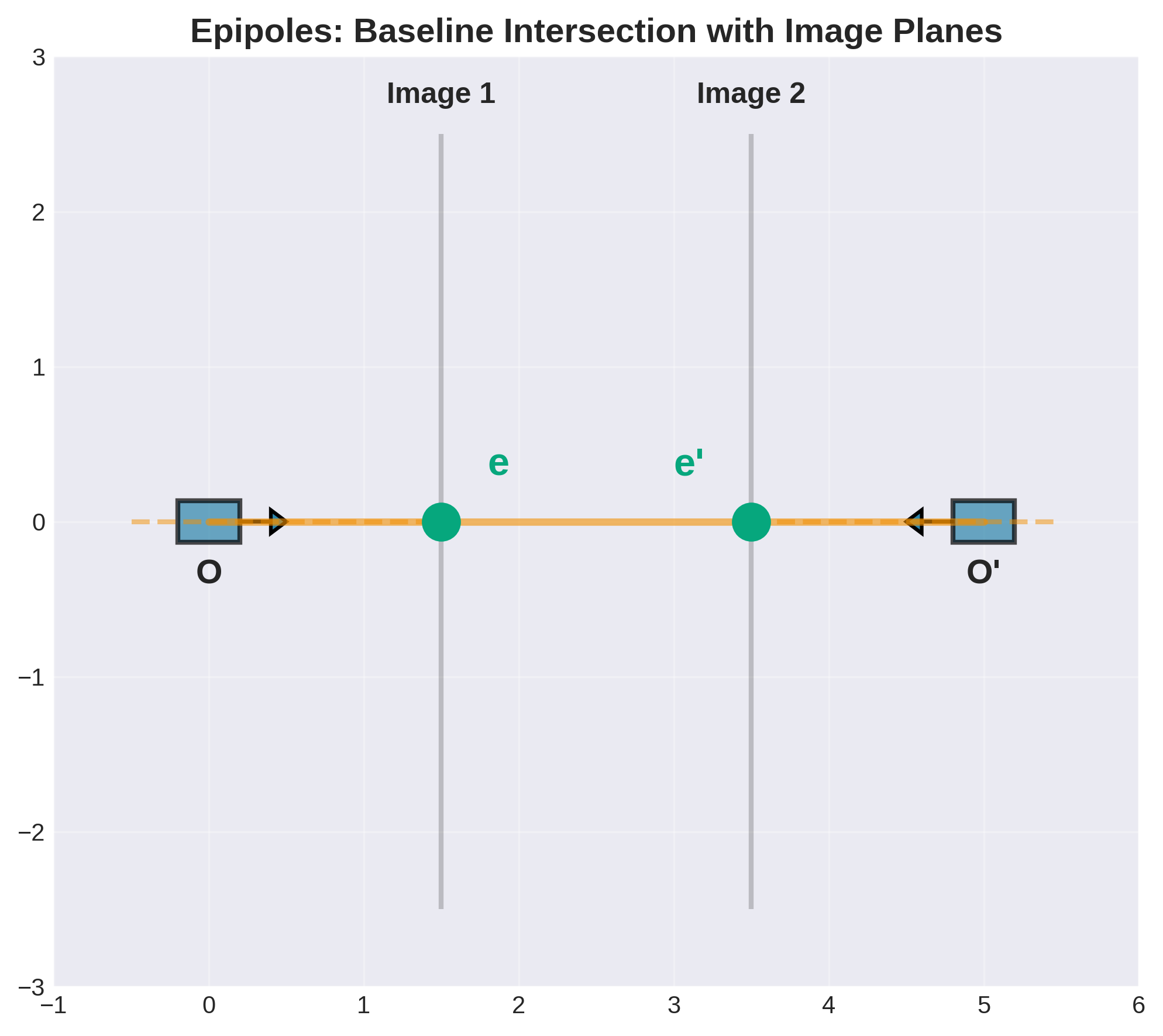 极点 \(e, e'\) 是基线与两个图像平面的交点: