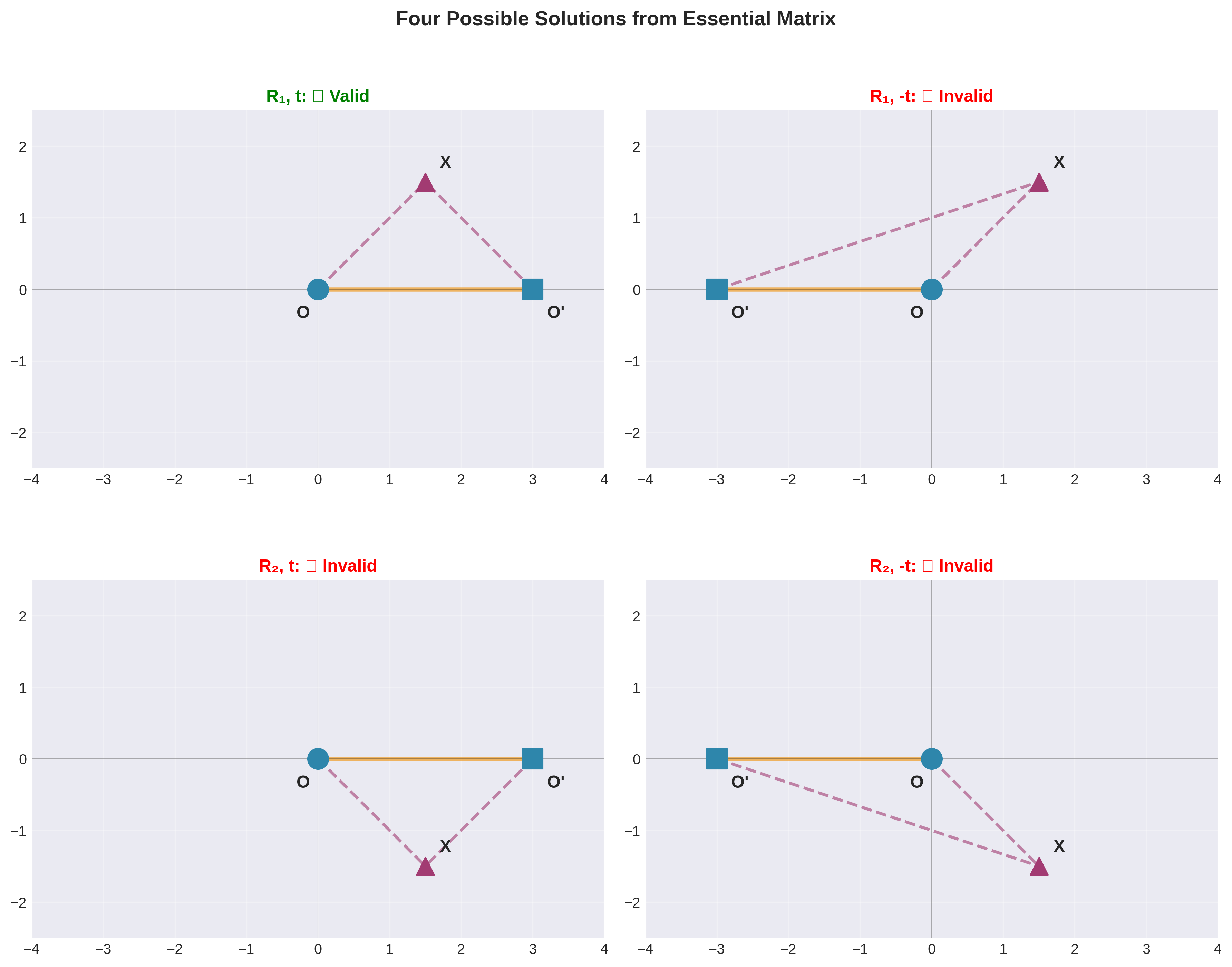 存在4种组合:\((R_1, t), (R_1, -t), (R_2, t), (R_2, -t)\)