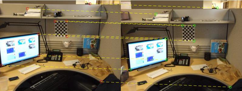 \[x'^T F x = (x', y', 1) \begin{bmatrix} f_{11} & f_{12} & f_{13} \\ f_{21} & f_{22} & f_{23} \\ f_{31} & f_{32} & f_{33} \end{bmatrix} \begin{pmatrix} x \\ y \\ 1 \end{pmatrix} = 0\]展开为线性方程:
