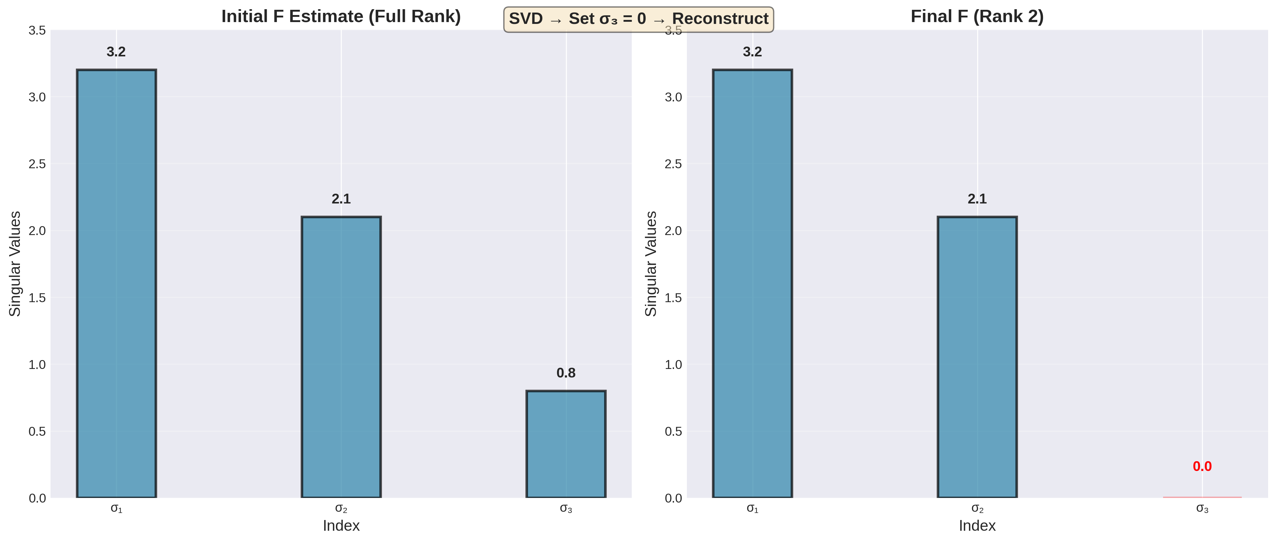 估计的 \(F\) 可能不满足 det(F) = 0,需要强制秩为2: