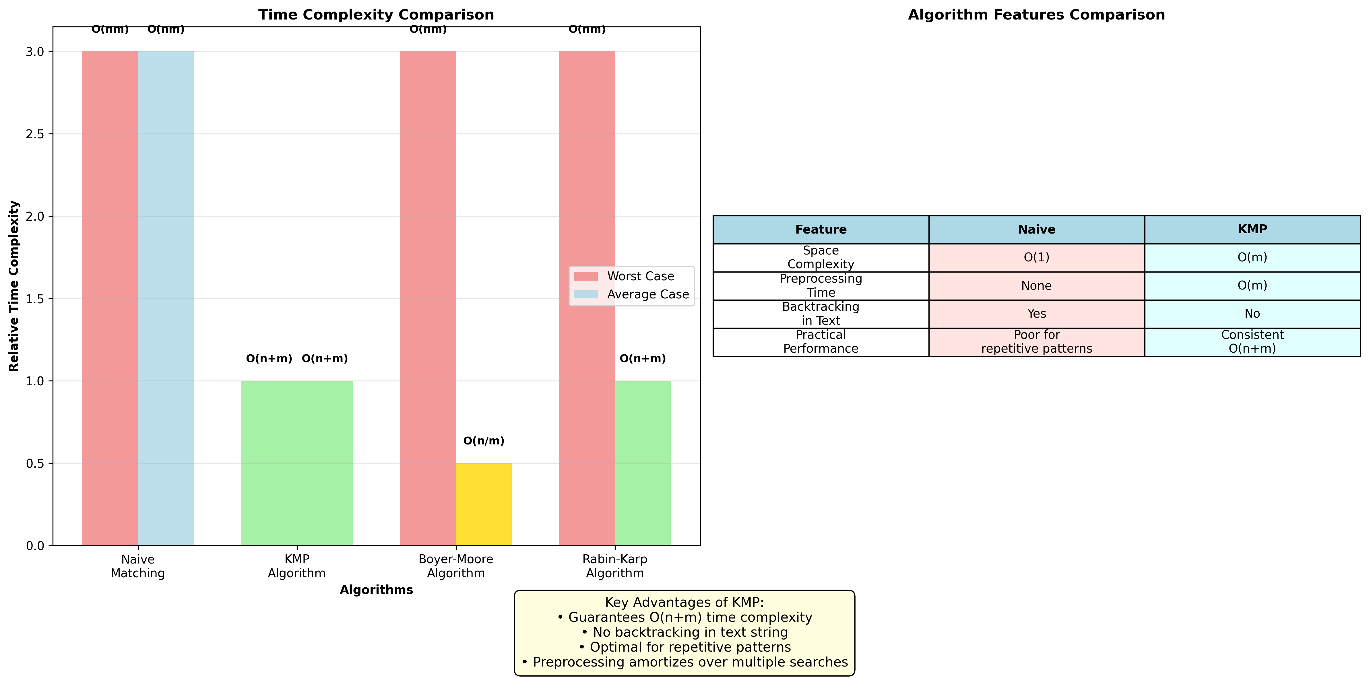 - 最差情况:\(O(M \times N)\) - 目标形如\(a^n\),模式形如\(a^{m-1}b\) 总比较次数:\(M(N-M+1)\)