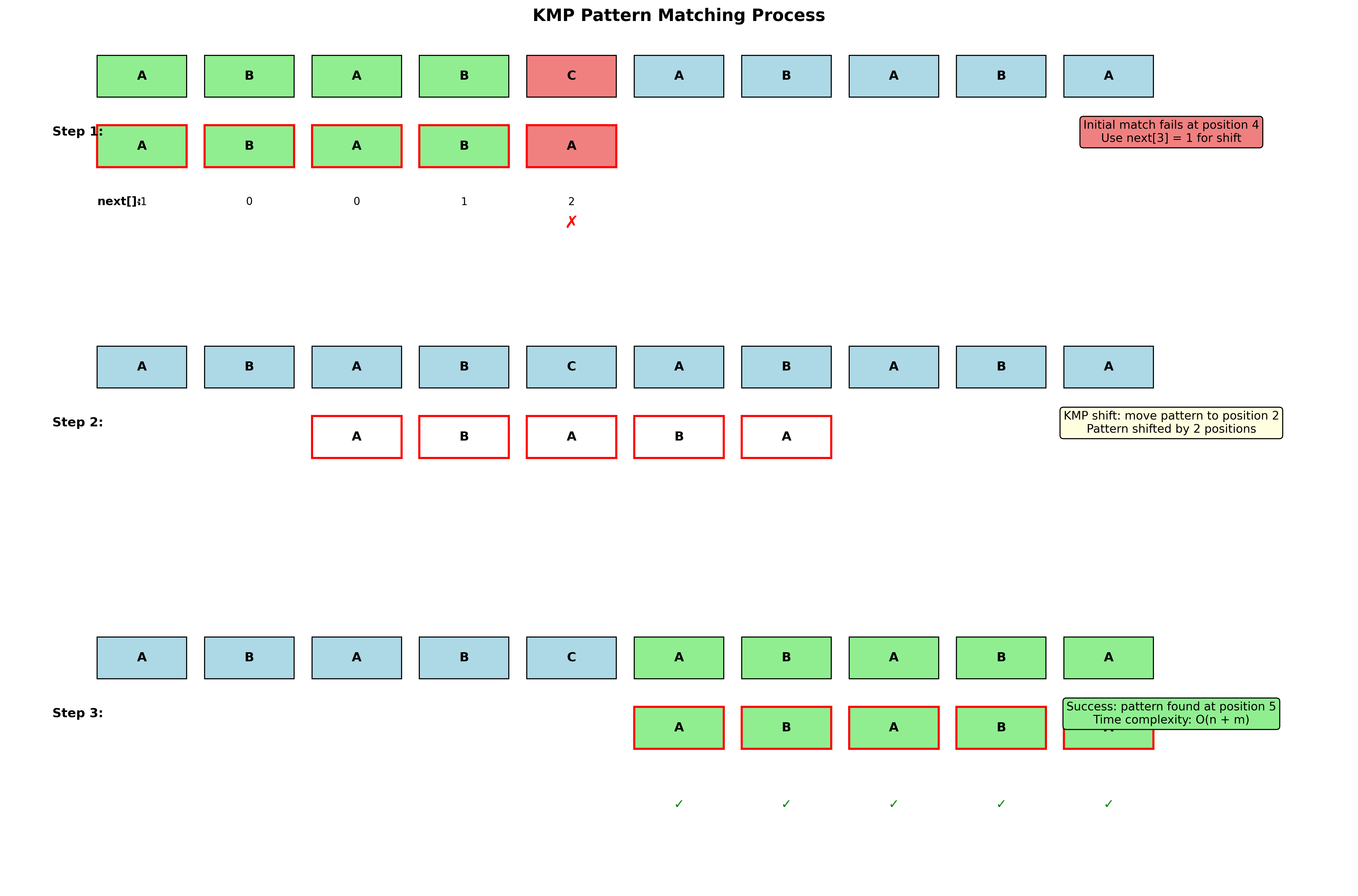 - 匹配成功:\((p_0 = t_i, p_1 = t_{i+1}, \ldots, p_{m-1} = t_{i+m-1})\) 即,\(T.substr(i, m) == P.substr(0, m)\)