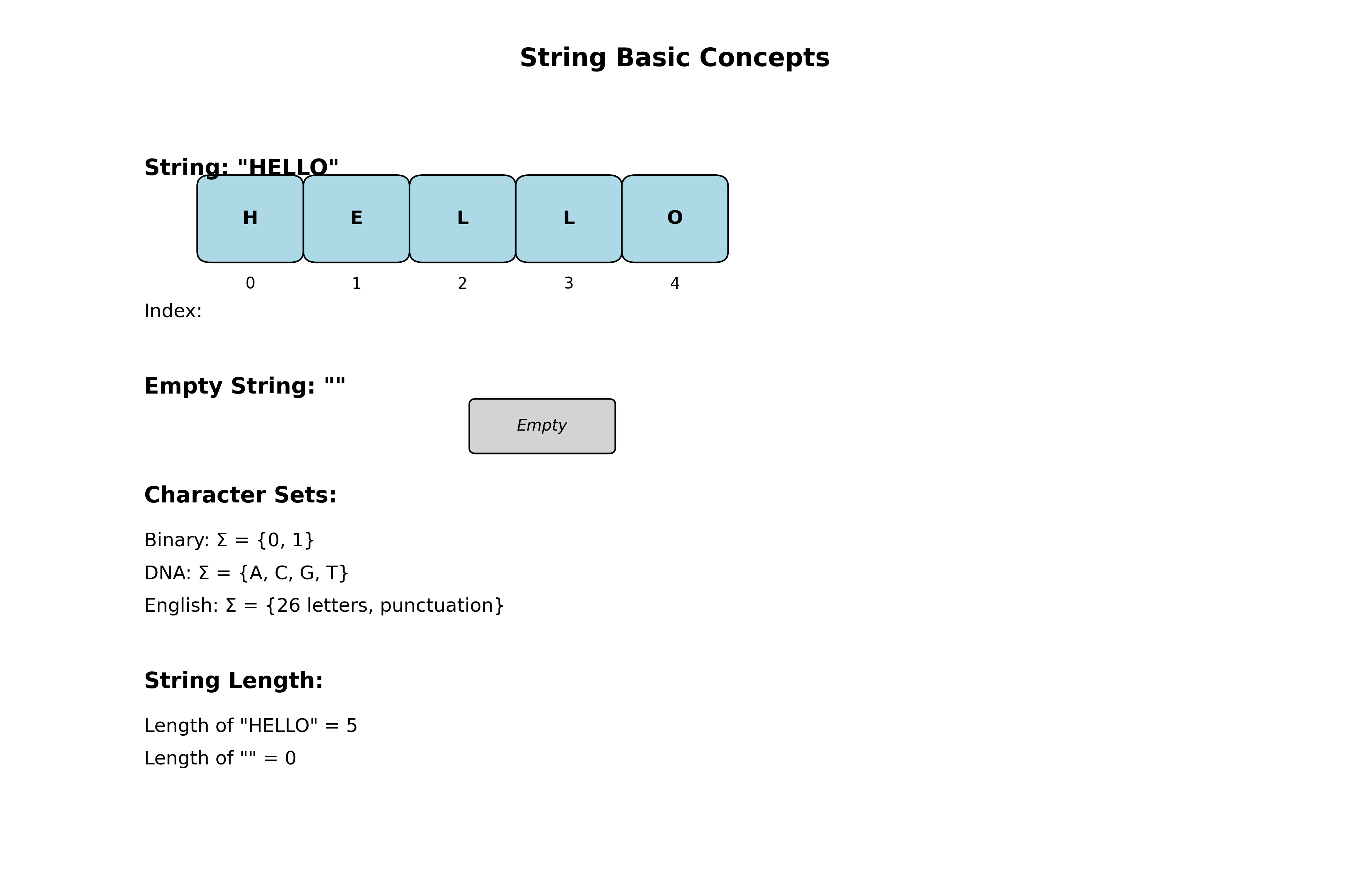 - 字符串(String):由0或多个字符顺序排列所组成的有限序列,简称”串”