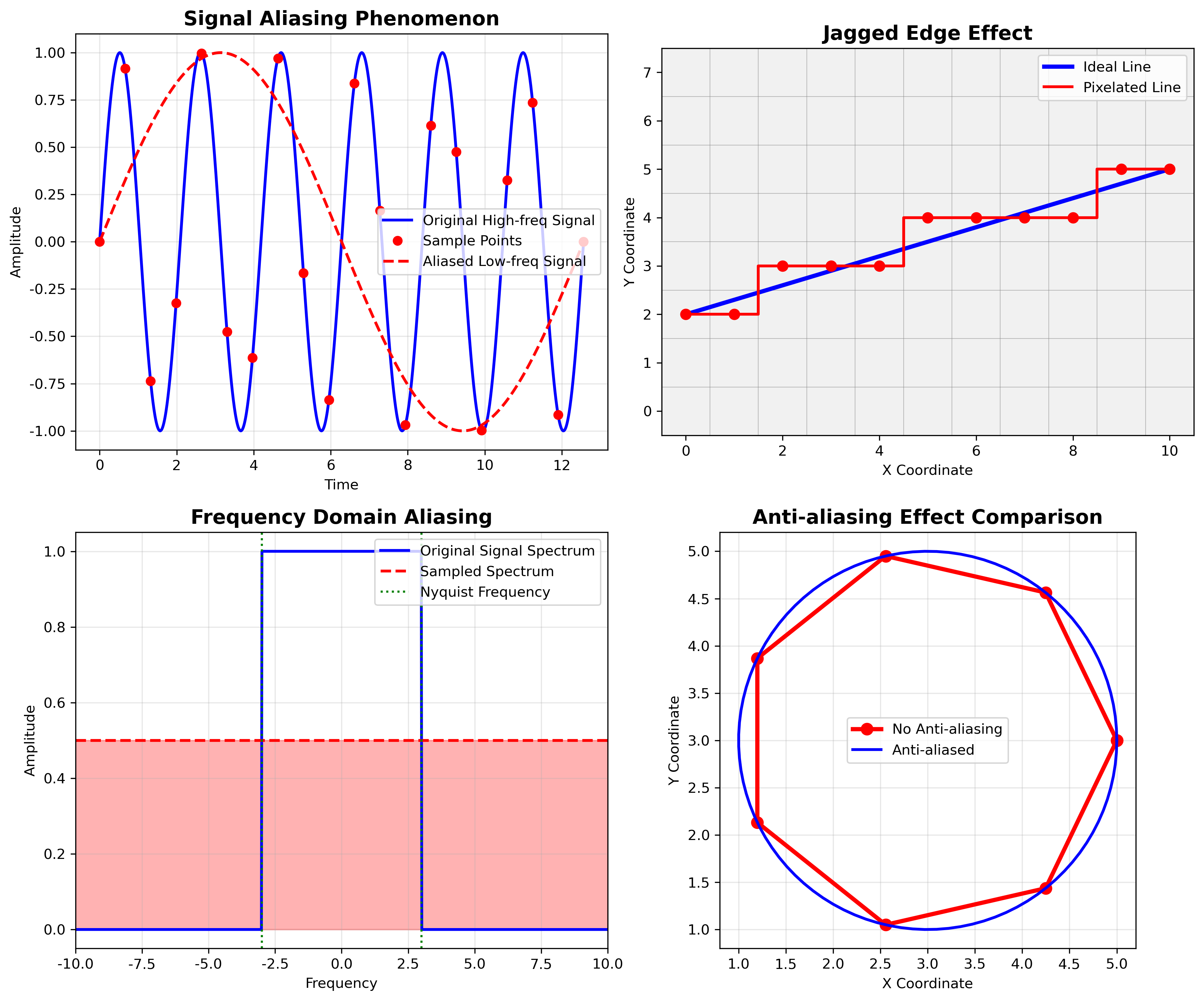 - 混叠(Aliasing):高频信号被误认为低频信号