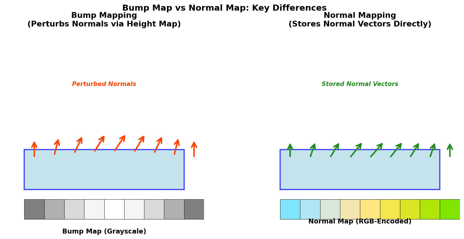 通过修改表面法线或实际几何来模拟微观表面细节: